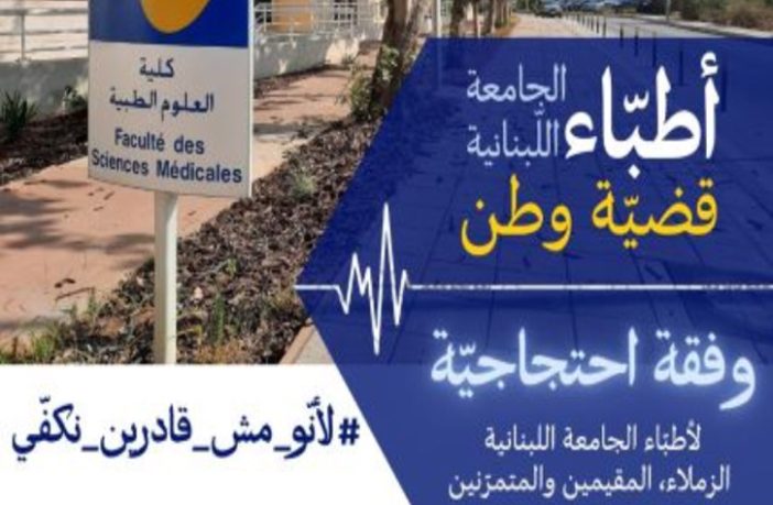 أعلن أطباء الجامعة اللبنانية المقيمون والمتمرنون في بيان، أنهم سينفذون وقفة احتجاجية يوم الجمعة في العاشر من آذار عند الساعة العاشرة والنصف صباحا، وذلك بالتزامن مع إضرابهم عن العمل في المستشفيات باستثناء الحالات الحرجة فقط والذي دخل يومه الثالث مع احتمال تحوله إلى إضراب كلي في حال لم تتحقق مطالبهم.