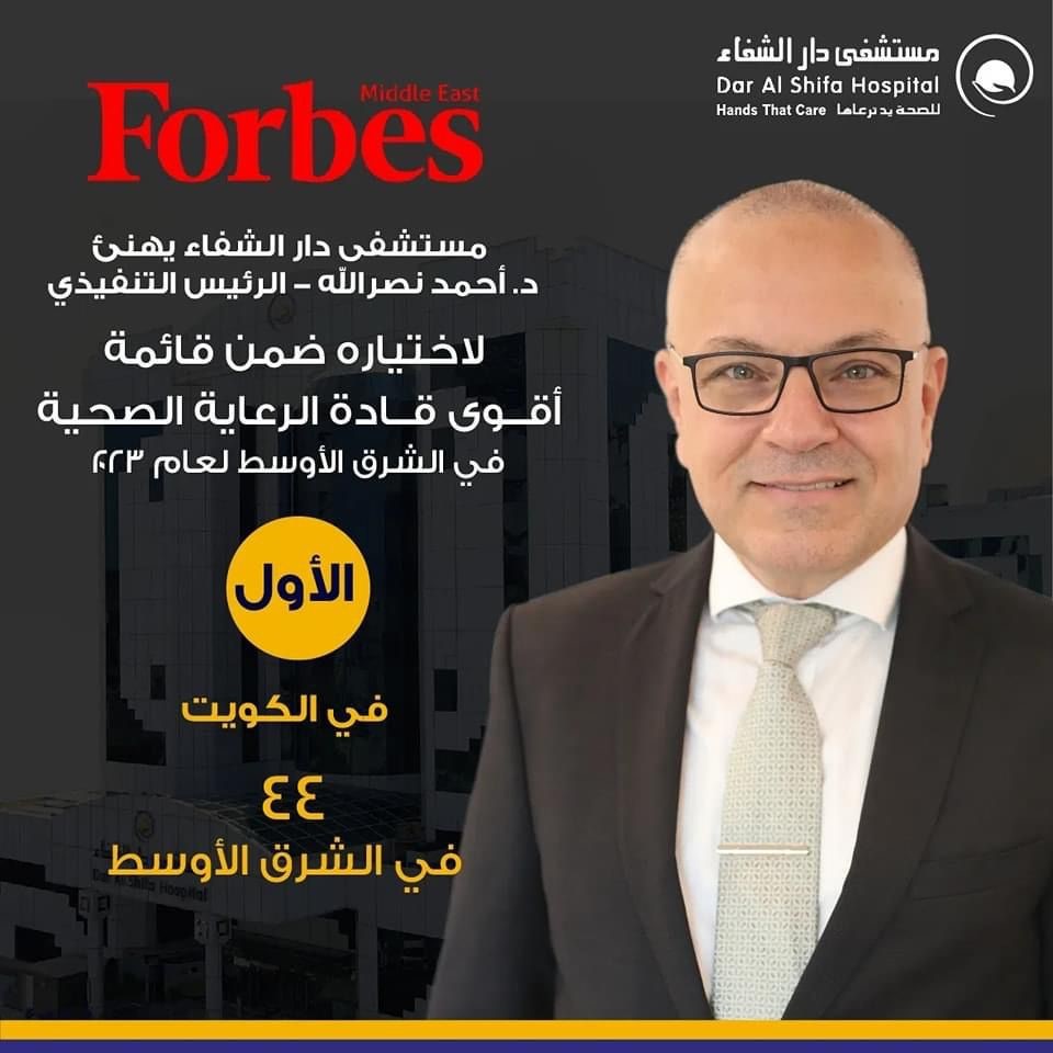 مرة جديد تثبت الكفاءات اللبنانية تفوقها وتميزها في دول الاغتراب، حيث حل الدكتور اللبناني احمد ديب نصرالله ابن بلدة السكسكية الجنوبية الرئيس التنفيذي لمستشفى «دار الشفاء» الكويتية، الأول في الكويت والـ 44 في الشرق الأوسط، في قائمة أقوى قادة الرعاية الصحية الأكثر تأثيراً للعام 2023 في المنطقة والتي تعدها «فوربس الشرق الأوسط».