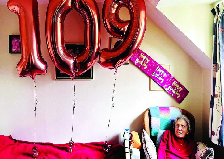 احتفلت جدة بعيد ميلادها الـ 109، أخيراً، مما يجعلها أصغر بأربع سنوات فقط عن أكبر شخص على قيد الحياة في المملكة المتحدة، وفقاً لصحيفة «ديلي ميل» البريطانية. ولدى سؤال أوليف ادواردز، المعلمة المتقاعدة التي تعيش في شمال يروكشاير، عن سر طول عمرها، أجابت أن السبب هو عنادها، وتناولها على الدوام ثلاث وجبات في اليوم.