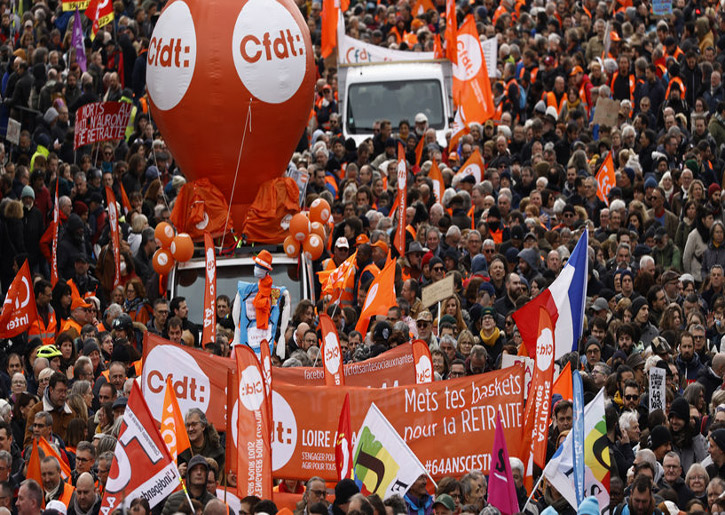 نظم متظاهرون فرنسيون، الثلاثاء، مسيرة على طول خطوط السكك الحديدية في باريس، في اليوم العاشر من الإضرابات النقابية ضد خطة إصلاح معاشات التقاعد الحكومية، والتي رفعت سن التقاعد من 62 إلى 64 عاما.