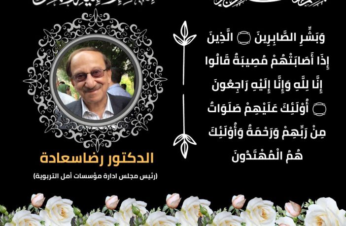 ببالغ الحزن والأسى ننعي إليكم وفاة الدكتور رضا محمد سعادة