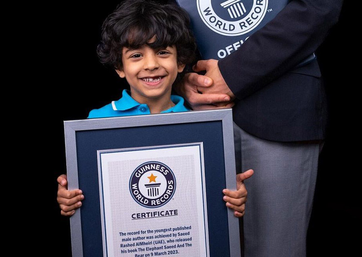 دخل الطفل الإماراتي، سعيد راشد المهيري (4 سنوات) موسوعة “غينيس” للأرقام القياسية كـ”أصغر شخص (ذكر) ينشر كتاباً”.