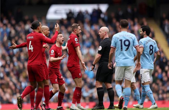 “تم توجيه اتهام لنادي ليفربول، بعد محاصرة لاعبيه الحكم، سيمون هوبر، في مباراة مانشستر سيتي وتحديدًا في الدقيقة 34.