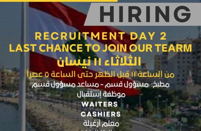 مطعم Ka3keez في صور بحاجة الى موظفين في المجالات التالية: