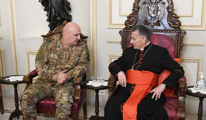 والتقى البطريرك الراعي قائد الجيش العماد جوزاف عون على رأس وفد من المؤسسة العسكرية في زيارة تهنئة بالفصح وكانت مناسبة لعرض الأوضاع الامنية في البلد.