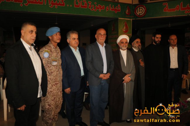بعدها تحدث النائب علي خريس مستذكرًا مجزرة قانا التي هي محطة من المحطات الأساسية، حيث اقترف العدو أفظع المجازر، وقال: “تعلمنا من الإمام الصدر ان اسرائيل شر مطلق والتعامل معها حرام، مؤكدا أنه وبالرغم من الدماء التي سالت والشهداء الذين ارتقوا يبقى الخاسر الأكبر هو العدو الاسرائيلي، لأن مجزرة قانا دخلت الى كل بيت والى كل العالم”، ذاكراً المبادرة التي أطلقها الرئيس نبيه بري حين حمل هذه القضية على المستوى الدولي شارحا تفاصيل ما جرى.