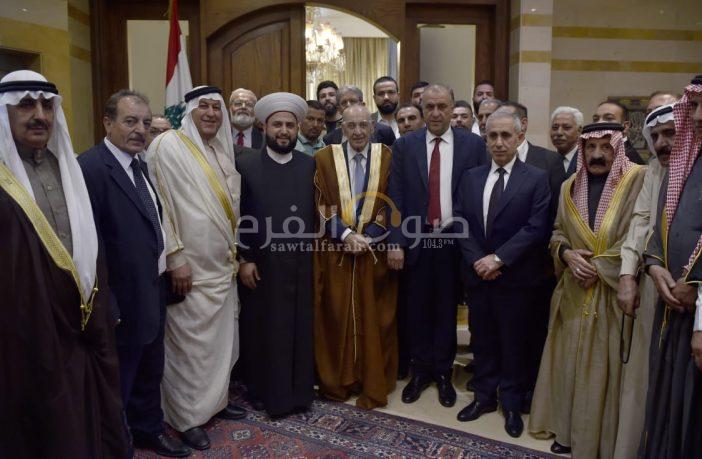استقبل دولة رئيس مجلس النواب نبيه بري في مقر الرئاسة الثانية في عين التينة وفداً كبيراً من شيوخ العشائر العربية من مختلف المناطق اللبنانية ومن العشائر العربية في خلدة بحضور النائبين محمد سليمان ومحمد خواجة ، الوفد منح الرئيس بري عباءة العشائر العربية عربون وفاء وتقدير لمواقفه وجهوده في لم الشمل الوطني متمنياً على رئيس المجلس التدخل وبذل جهوده من أجل إنجاز المصالحة بأحداث خلدة .