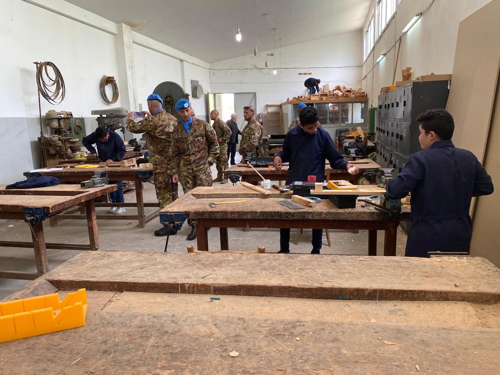 تم الترحيب بالعقيد بادوانو من قبل جمع من الإدارة و الطلاب. فكانت كلمة شكر من قبل إدارة المؤسسة ، معبّرين فيهاعن امتنانهم للكتيبة الايطالية لوقوفهم الدائم في دعم المهنية عبر بعض الهبات و تنفيذ بعض المشاريع و كما إقامة بعض الدورات التدريبية للطلاب. كما اقاموا جولة تفقدية للعقيد بادوانو للمختبرات مع شرح عن تاريخ و هدف تأسيس المؤسسة ، عارضين أيضا الأوضاع الصعبة التي تمر بها البلاد والتي أثّرت بطريقة او بأخرى على القطاع التعليمي في لبنان.