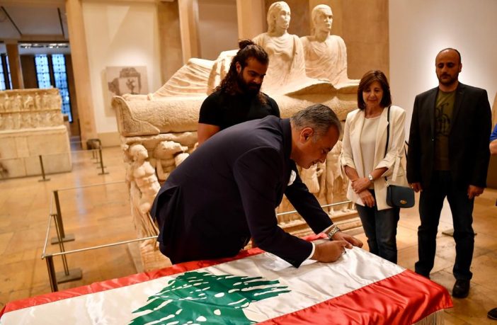 كما حث وزير الثقافة، كل زائر لبناني للتوقيع على علم لبنان الذي اودعه اليوم في المتحف الوطني وكان اول الموقعين.