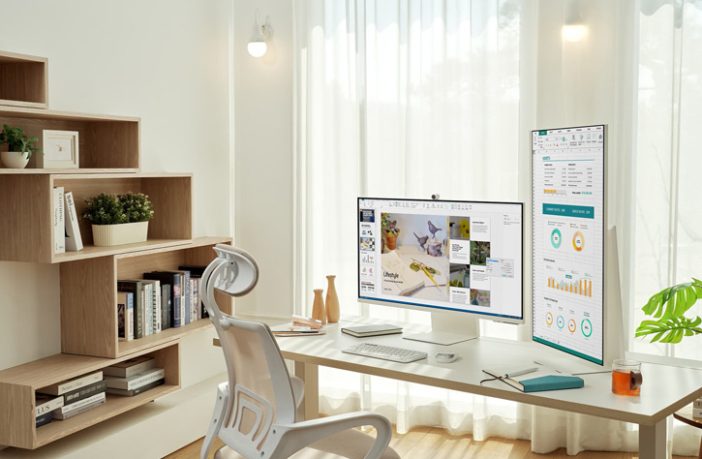 وقالت سامسونغ إن تشكيلة الشاشات لعام 2023 حُسِّنت لجعل العمل عن بُعد سلسًا وسهلًا، وتتيح مساحة العمل التي لا تحتوي على حاسوب شخصي الوصول من بُعد عن طريق الاتصال لاسلكيًا بأجهزة الحاسوب والانعكاس المتطابق لها.