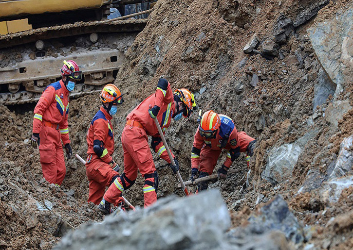 وذكر التلفزيون الصيني أن أكثر من 180 عامل إنقاذ انتقلوا إلى موقع الحادث، مضيفا أن عمليات البحث والإنقاذ ما تزال جارية.
