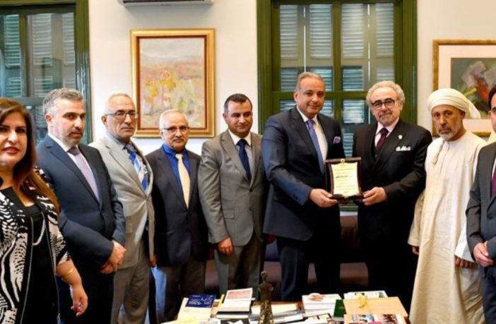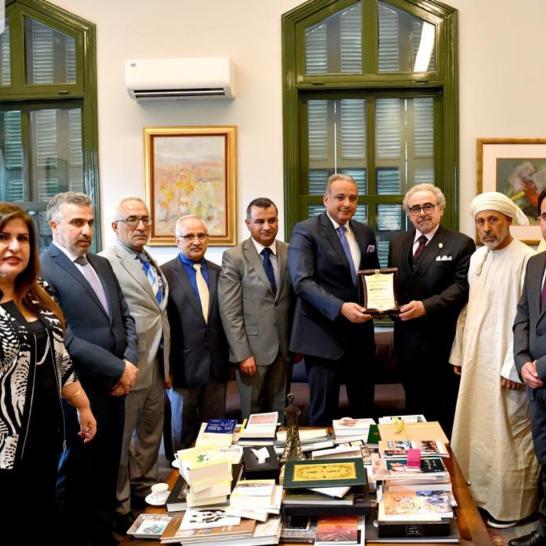 استقبل وزير الثقافة القاضي محمد وسام المرتضى في مكتبه في المكتبة الوطنية-قصر الصنائع الامين العام للاتحاد العام للادباء والكتاب العرب، رئيس النقابة العامة لكتاّب مصر، الدكتور علاء عبد الهادي ونائب الامين العام رئيس الجمعية العمانية للادباء والكتّاب الدكتور سعيد الصقلاوي والامين العام لاتحاد الكتاب اللبنانيين الدكتور إلياس زغيب ووفد من الهيئة الإدارية.