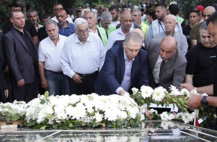 بحضور نائب رئيس المجلس الوطني الفلسطيني وعضو المكتب السياسي للجبهة الديمقراطية علي فيصل، ومنسق عام الحملة الأهلية لنصرة فلسطين وقضايا الأمة معن بشور، امين سر فصائل منظمة التحرير الفلسطينية وحركة فتح في بيروت العميد سمير ابو عفش، كوادر واعضاء حركة فتح ومكاتبها الحركية وممثلو الفصائل الفلسطينية والاحزاب اللبنانية واللجان الشعبية وحشود غفيرة من ابناء شعبنا في مخيمات بيروت.