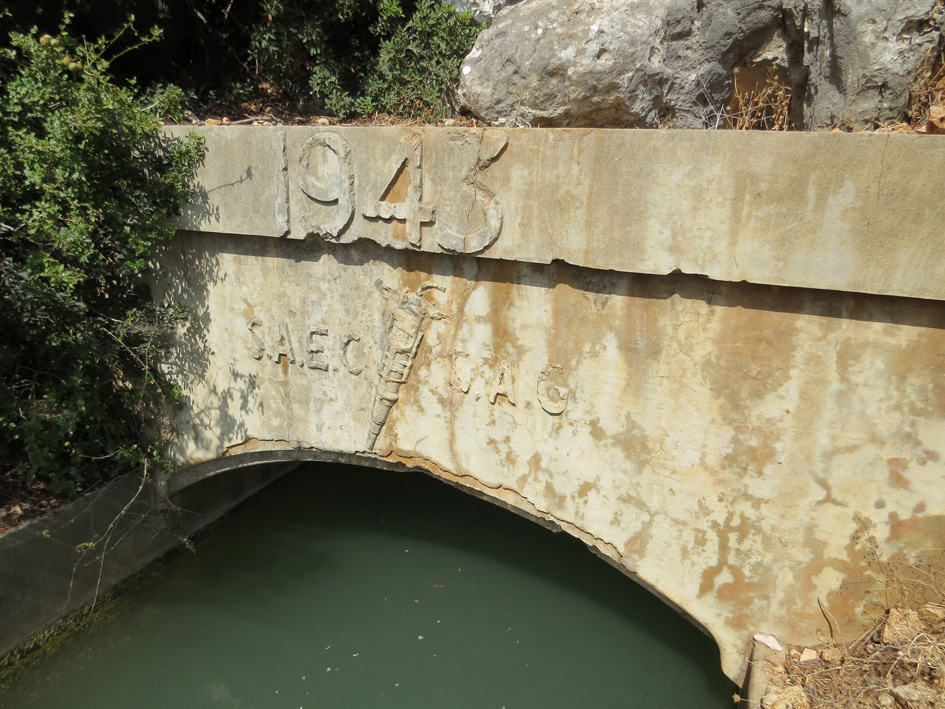 النفق المائي المتفرع من “مشروع ري الليطاني” في الزرارية وقد حُفر على قنطرته تاريخ 1943