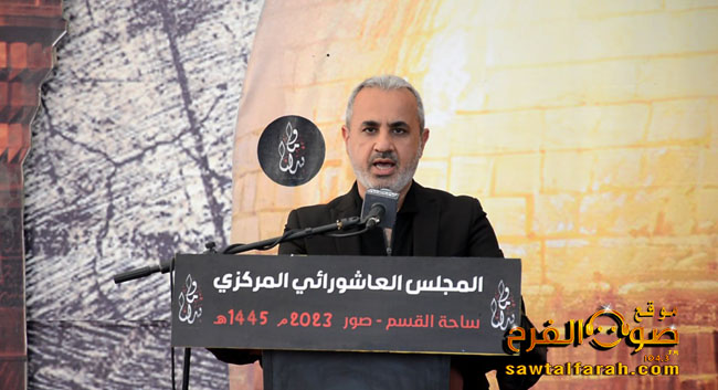 بعد تلاوة آيات من الذكر الحكيم بصوت القارئ عباس حمود وتقديم من المسؤول الإعلامي لإقليم جبل عامل علوان شرف الدين، كانت السيرة الحسينية مع عميد المنبر الحسيني السيد نصرات قشاقش.