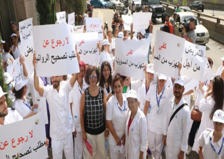 نفّذت نقابة الممرضات والممرضين في لبنان، إعتصاماً قرب مستديرة العدلية – مقابل بيت المحامي، رفضاً لموقف نقابة المستشفيات لعدم الموافقة على تصحيح أجورهم.