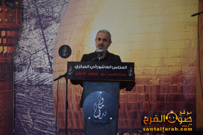 بعد تلاوة آيات من الذكر الحكيم بصوت القارئ عباس حمود وتقديم من المسؤول الإعلامي لإقليم جبل عامل علوان شرف الدين، كانت السيرة الحسينية العطرة مع خطيب المنبر الحسيني سماحة السيد نصرات قشاقش.