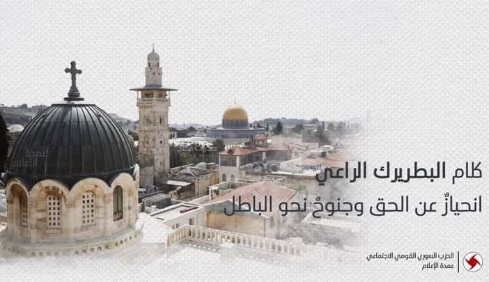 طالعنا البطريرك #بشارة_الراعي قبل أيام، بكلامٍ لا يعكس مسؤولية صاحبه بحمل أمانة «بطريركية إنطاكية وسائر المشرق» أو «سائر #سورية»، تناول فيه «حياد #لبنان»، وما أسماه مشروع «سورية الكبرى» قاصداً بذلك #الجمهورية_العربية_السورية، ومشروع «#إسرائيل الكبرى»، مساوياً بين ما اعتبره «مشروعين» متشابهين.