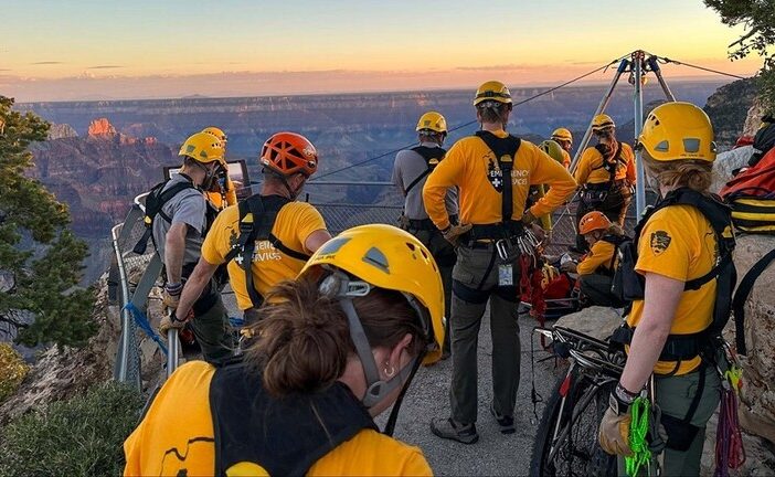 وتقول السلطات إن طواقم الطوارئ استغرقت ساعتين لإنقاذ وايت كوفمان بعد أن انزلق من أعلى منحدر الثلاثاء، وسقط نحو 100 قدم (30 مترا) في مسار برايت أنجل بوينت.