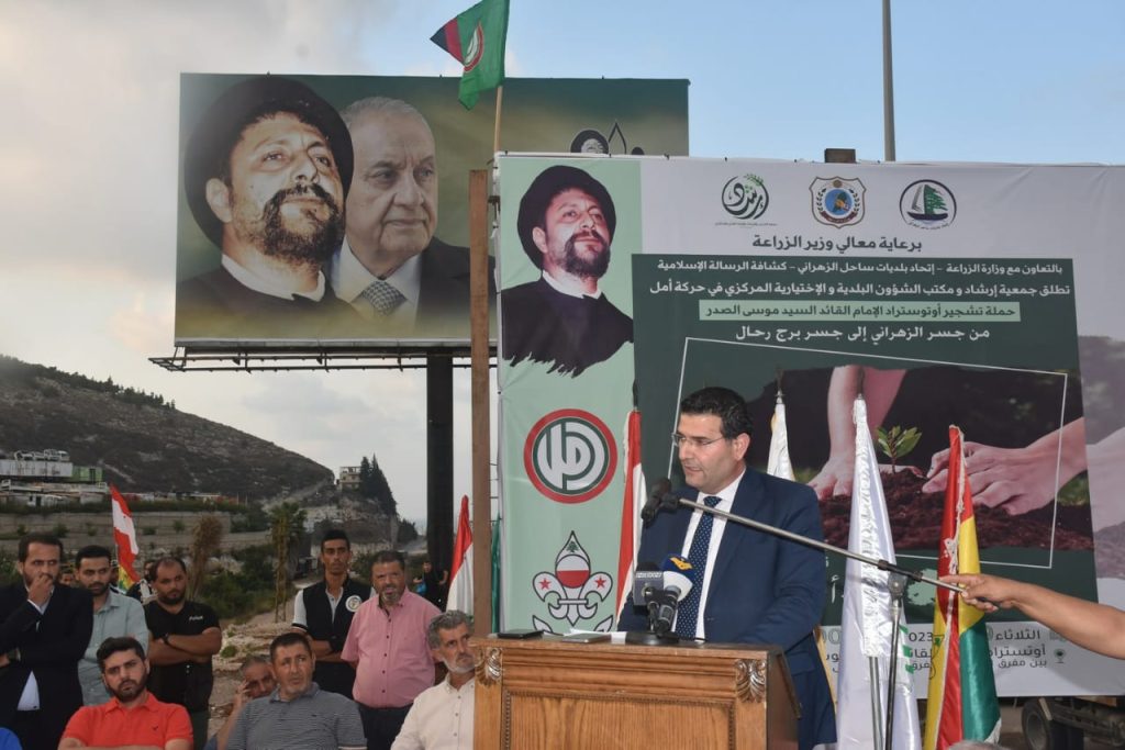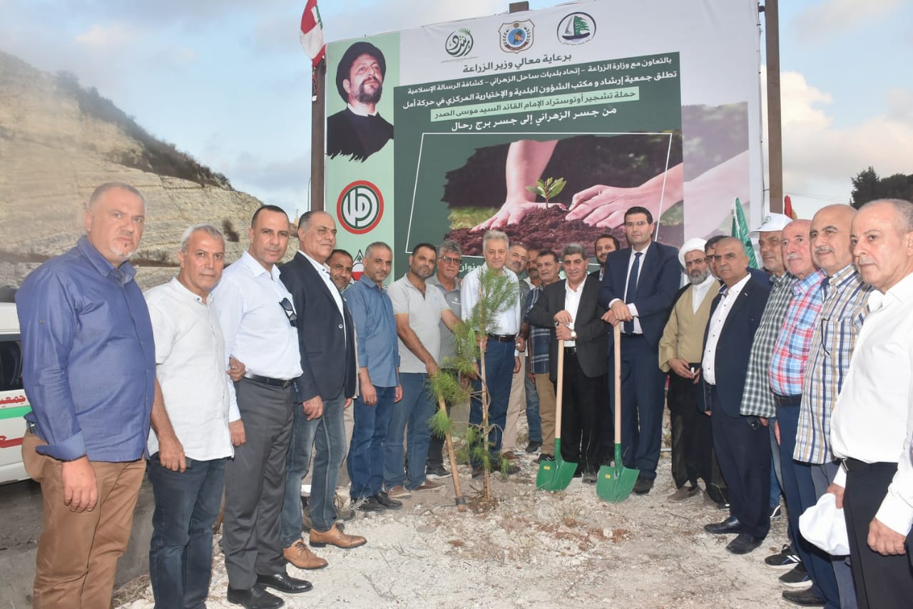 ضمن فعاليات احياء ذكرى اخفاء الامام القائد السيد موسى الصدر ورفيقيه وتحت عنوان ( غرسة امل وفاء للإمام ) وبرعاية وزير الزراعة عباس الحاج حسن بالتعاون مع وزارة الزراعة واتحاد بلديات ساحل الزهراني وجمعية كشافة الرسالة الاسلامية اطلقت جمعية ارشاد ومكتب الشؤون البلدية والاختيارية المركزي في حركة امل حملة تشجير اوتستراد الامام القائد السيد موسى الصدر من جسر الزهراني الى جسر برج رحال.