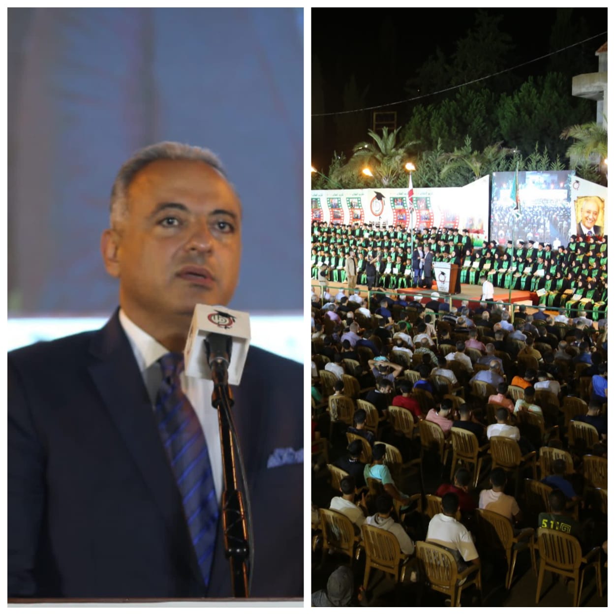 واستطرد: “لبنان ايها الخريجون والخريجات أعطاكم الكثير. حتى الأيام الصعبة كانت لكم أمثولة. ثقوا ان لبنان ينتظركم وان أياما أحلى ستضرب معكم المواعيد لأن لا ليل ليس بعده شروق ولا عذاب الا وبعده عذوبة. اصمدوا وكونوا حلقة الوصل بين ماضي ذويكم وبين مستقبل اولادكم وابقوا ممسكين بالقلم في يد وبالمبضع في اليد الأخرى. الأول لكتابة الإشعاع الحضاري ثقافة وعلما وفنونا وانفتاحا وعيشا واحدا مسلمين ومسيحيين، والثاني أي المبضع لبتر الغدة السرطانية المتمثلة بالكيان الغاصب الجاثم على كاهلنا اذ لا راحة لنا أو هناء قبل اجتثاثه وتطهير ارضنا المقدسة من رجسه”.