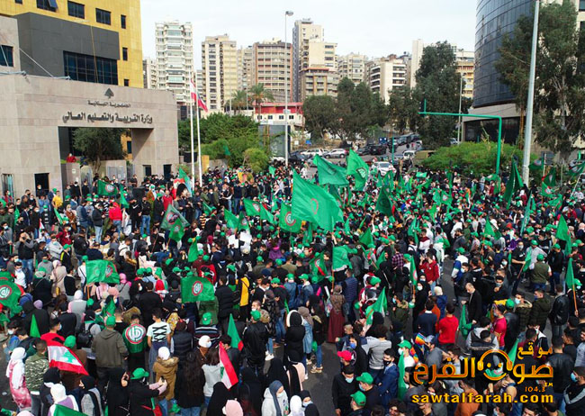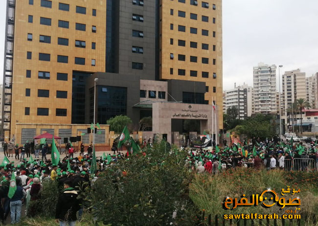 نظم مكتب الشباب والرياضة المركزي في حركة “أمل” وقفة طلابية إحتجاجية حاشدة أمام مبنى وزارة التربية في الاونيسكو شارك فيها الالاف من طلاب الجامعة اللبنانية والجامعات الخاصة وذلك رفضا لرفع الأقساط في المدارس والجامعات الخاصة ولعدم القدرة الاستيعابية في الجامعة الأم والمطالبة بتنفيذ قانون الدولار الطالبي.