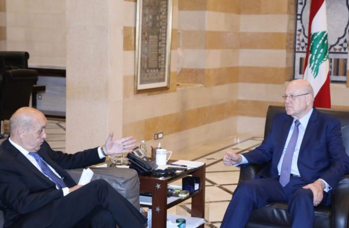 إستقبل رئيس الحكومة المستقيلة نجيب ميقاتي موفد الرئيس الفرنسي إيمانويل ماكرون الوزير السابق جان ايف لودريان قبل ظهر اليوم في السرايا.