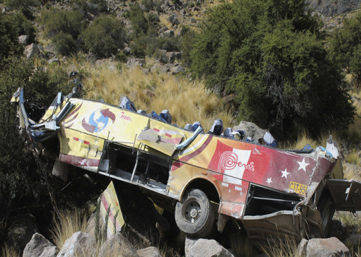ووقع الحادث ليل الأحد-الإثنين عندما خرجت عن الطريق حافلة ركّاب على متنها أكثر من 50 شخصاً كانوا متجّهين من هوانتا في منطقة أياكوتشو إلى هوانكايو في منطقة خونين.