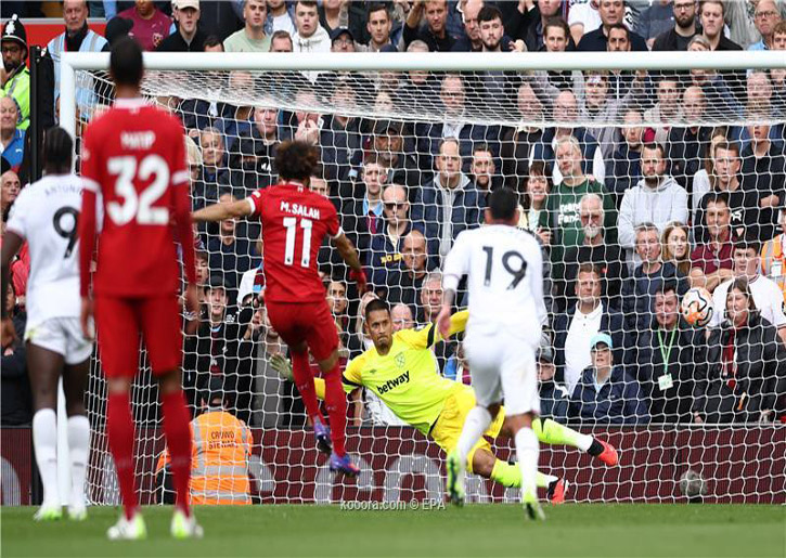 واستمر زحف ليفربول تجاه مرمى وست هام، بعدما مهد دياز الكرة لصلاح داخل المنطقة في الدقيقة 39، ليسدد كرة أرضية مقوسة مرت إلى جوار القائم.