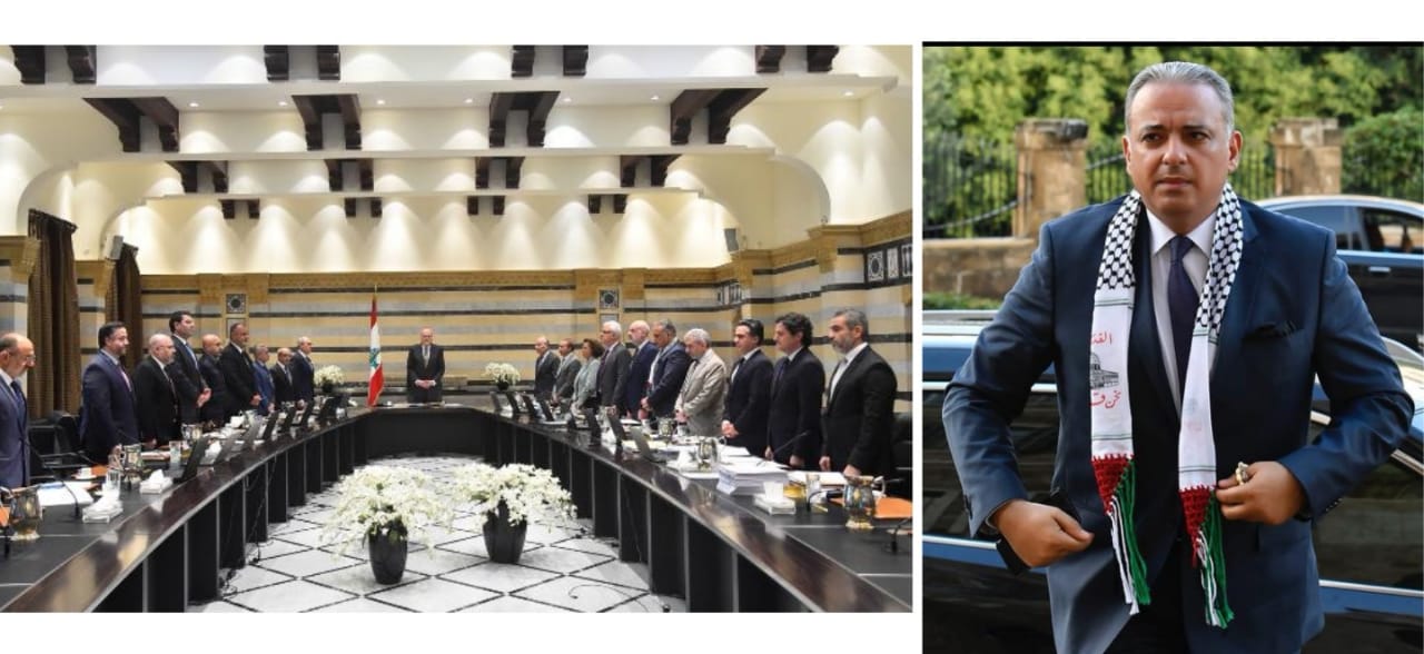 وزير الثقافة القاضي محمد وسام المرتضى وصل الى مجلس الوزراء مرتدياً الكوفية الفلسطينية وبناء على طلبه وقف الرئيس والوزراء دقيقة صمت عن أرواح شهداء المقاومة وضحايا الإجرام الاسرائيلي مع تلاوة الفاتحة.
