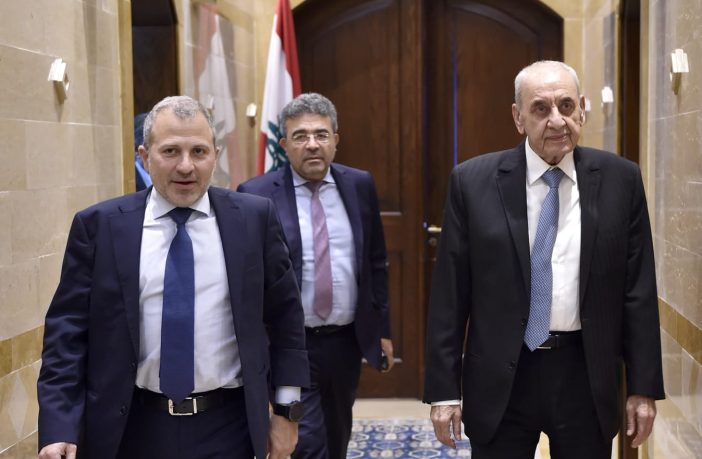 استقبل رئيس مجلس النواب الاستاذ نبيه بري في مقر الرئاسة الثانية في عين التينة رئيس التيار الوطني الحر النائب جبران باسيل حيث جرى عرض للاوضاع العامة وآخر المستجدات السياسية والامنية على ضوء تصاعد العدوان الاسرائيلي على قطاع غزة ولبنان فضلا عن الاستحقاق الرئاسي وبعد اللقاء تحدث النائب باسيل قائلاً :
