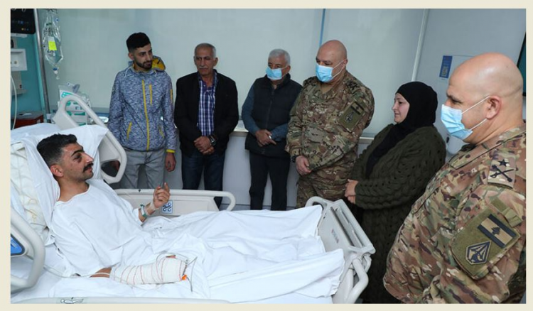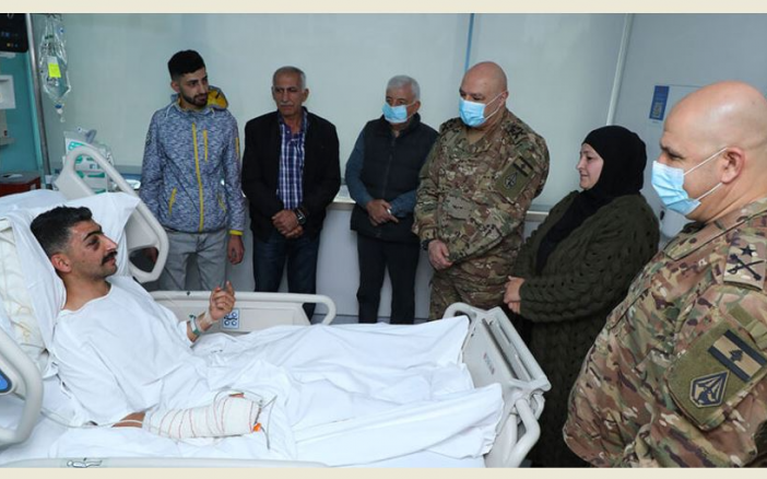 تفقّد قائد الجيش العماد جوزاف عون العسكريين الجرحى الذين أصيبوا نتيجة استهداف مركز للجيش في العديسة من قبل العدو الإسرائيلي بتاريخ 5 / 12 / 2023، واطّلع على وضعهم الصحي، مشيدًا ب”اندفاعهم وتضحياتهم لأداء مهمتهم”، ومتمنيًا لهم “الشفاء العاجل”.