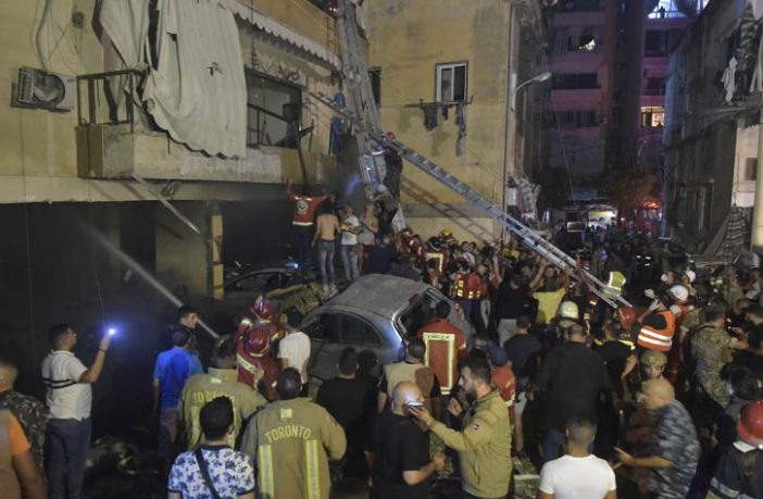 ولاحقا افاد الأمين العام للصليب الأحمر اللبناني جورج كتانة انه “تم نقل 4 جثث وعدد من الجرحى إلى مستشفى المقاصد من جراء انفجار خزان المازوت الذي اشتعلت فيه النيران”. وسادت حال من الهرج والمرج أمام مستشفى المقاصد بعد نقل المصابين إليه.