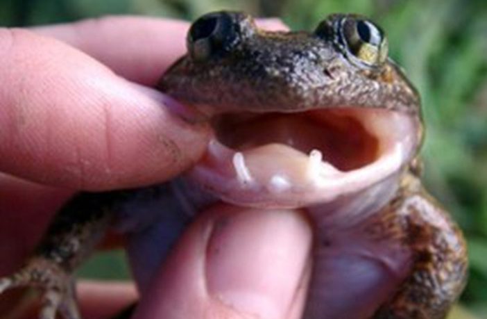 وأظهرت الدراسات أن أسنان الضفادع تطورت بشكل مستقل أربع مرات على الأقل. وقد عثر في السابق على ضفادع مماثلة في كمبوديا وفيتنام وغرب أفريقيا وأمريكا الجنوبية.
