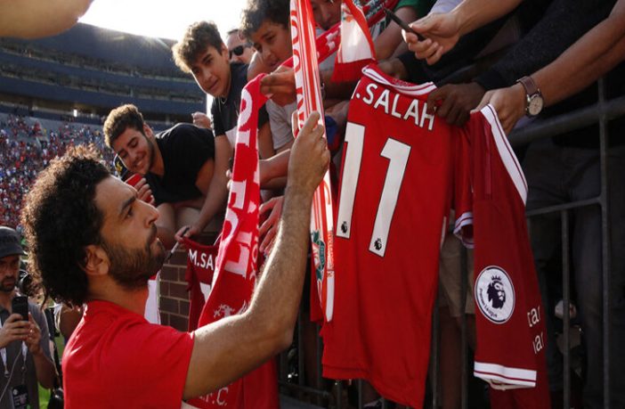 شهد أحد المزادات بمدينة مانشستر الإنجليزية الأسبوع الماضي بيع قميص النجم المصري محمد صلاح لاعب منتخب مصر ونادي ليفربول الإنجليزي، مقابل 250 ألف جنيه إسترليني.