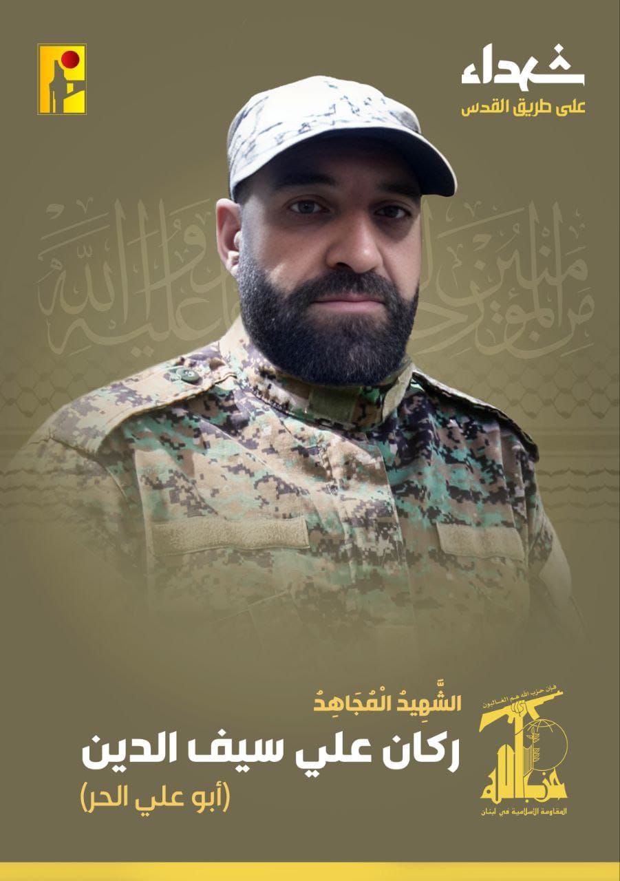 الشهيد المجاهد ركان علي سيف الدين “أبو علي الحر” من بلدة حلبتا في البقاع،