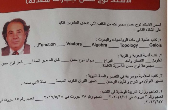 أصدر الاستاذ الشاعر والباحث نوح حسن بطاقة تعريف standers للعام 2024. ان البطاقة ثابتة و ممنهجة و واضحة للدخول والاطلاع على التفاصيل الدامغة للمحتوى الشامل في بداية السنة الجديدة 2024.