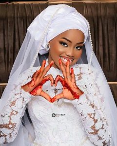 وظهرت زوجة ساديو بالحجاب، كما ارتدت العروس فستانًا أبيض من الدانتيل، مطرزًا مع طرحة بيضاء، ونسّقت معه إكسسورات مكونة من حلق وخاتم، كما اعتمدت المكياج القوي ورسمت حنة حمراء على يديها وفقاً للعادات والتقاليد الخاصة بهم.