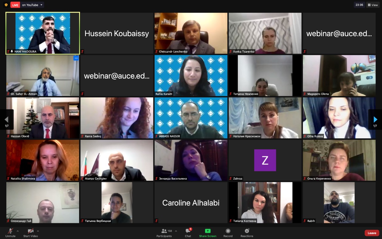 نظمت الجامعة الأميركية للثقافة والتعليم AUCE المؤتمر العلمي الأكاديمي حول “دور تكنولوجيا المعلومات في تنمية الأعمال في ظل جائحة كورونا”. حضر المؤتمر مشاركون من دول عدة حول العالم (الولايات المتحدة، اوكرانيا، بلغاريا، لبنان، الأردن، فرنسا وغيرها(.