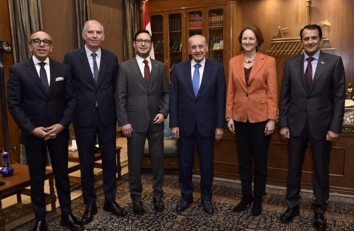 استقبل رئيس مجلس النواب الأستاذ نبيه بري في مقر الرئاسة الثانية في عين التينة سفراء اللجنة الخماسية سفير المملكة العربية السعودية وليد البخاري ، سفير دولة قطر الشيخ سعود بن عبدالرحمن بن فيصل آل ثاني ، السفير الفرنسي هيرفي ماغرو ، سفير جمهورية مصر العربية علاء موسى ، سفيرة الولايات المتحدة الاميركية ليزا جونسون بحضور مستشاري الرئيس بري الدكتور محمود بري وعلي حمدان اللقاء الذي استمر زهاء الساعة جرى خلاله عرض لآخر المستجدات لاسيما الاستحقاق الرئاسي .