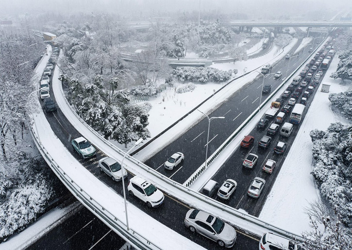 أعاقت الأمطار المتجمدة وتساقط الثلوج وتجمع الجليد حركة المرور في وسط وشرق الصين، في الوقت الذي يسافر فيه ملايين الأشخاص إلى ديارهم قبل عطلة عيد الربيع، وسط برد قارس اجتاح أجزاء من البلاد خلال الأسبوع الماضي. وكان إقليما هونان وهوبي الأكثر تأثرا بالطقس القاسي الذي تفاقم في مطلع الأسبوع، ما أدى إلى تباطؤ حركة المرور على الطرق السريعة وإلغاء مئات من رحلات القطارات.