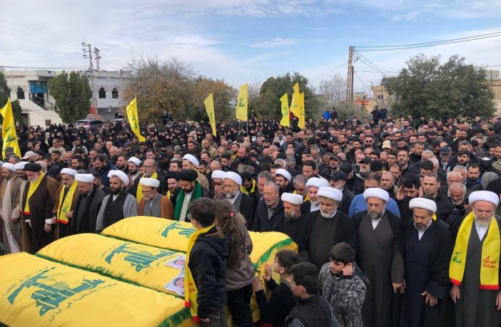 وجابت مسيرة التشييع شوارع البلدة يتقدمها سيارات الإسعاف التابعة للهيئة الصحية الإسلامية والفرق الكشفية، وقد ردد المشاركون اللطميات الحسينية والزينبية، وأطلقوا الهتافات والصرخات المنددة بأميركا وإسرائيل.