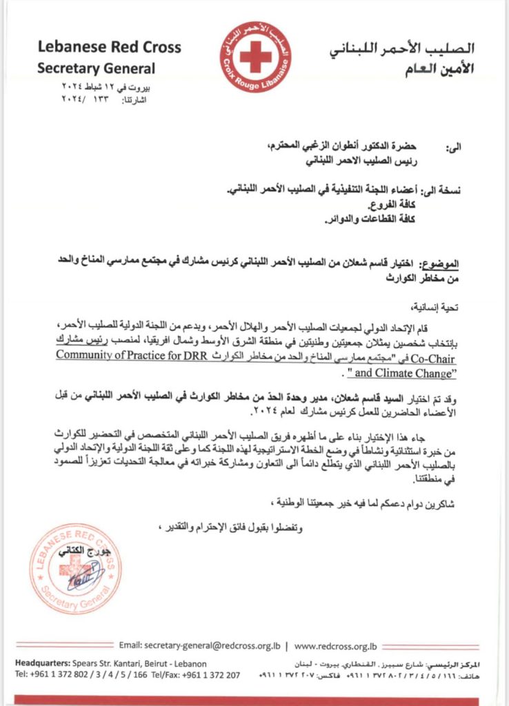 يبارك اتحاد بلديات قضاء صور ووحدة إدارة الكوارث في الاتحاد لمدير وحدة الحد من مخاطر الكوارث في الصليب الاحمر اللبناني السيد قاسم شعلان لانتخابه كرئيس مشارك للعام 2024 في مجتمع ممارسي المناخ والحد من مخاطر الكوارث من قبل الاتحاد الدولي لجمعيات الصليب الأحمر والهلال الأحمر وبدعم من اللجنة الدولية للصليب الأحمر، معبرين عن فخرهم واعتزازهم ، ومتمنين لشعلان كل التوفيق ودوام النجاح.