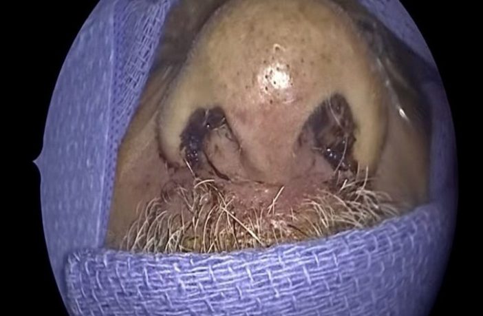 وبعدما تفاقمت الأعراض، زار المريض مستشفى HCA Memorial في جاكسونفيل، فلوريدا واستشار أخصائي الأذن والأنف والحنجرة الدكتور ديفيد كارلسون. وصُدم الطبيب عندما نظر داخل أنف الرجل بالكاميرا حيث شاهد العشرات من الحشرات تتغذى على الأنف وتجويف الجيوب الأنفية.