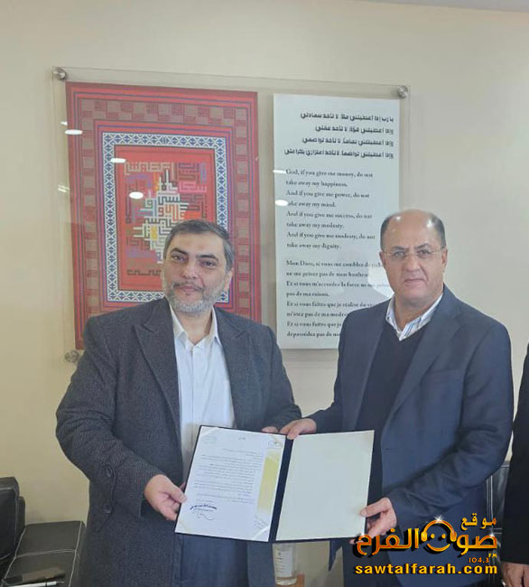 تخلل الزيارة تسليم رسالة من معاون الشؤون الدولية للحوزات العلمية الدكتورسيد مفيد الحسيني الكوهسارى وتوقيع اتفاقية تعاون علمي بين الطرفين ، تهدف الى تفعيل برامج تعليم اللغات والدراسات الانسانية بما فيها التاريخ وعلم النفس والاداب والثقافة والعلوم الاسلاميةو مد يد العون الى الطلاب من خلال المساعدة على تأمين الدورات والورش العلمية الدولية والندوات وترجمة النصوص بين اللغتين العربية والفارسية.