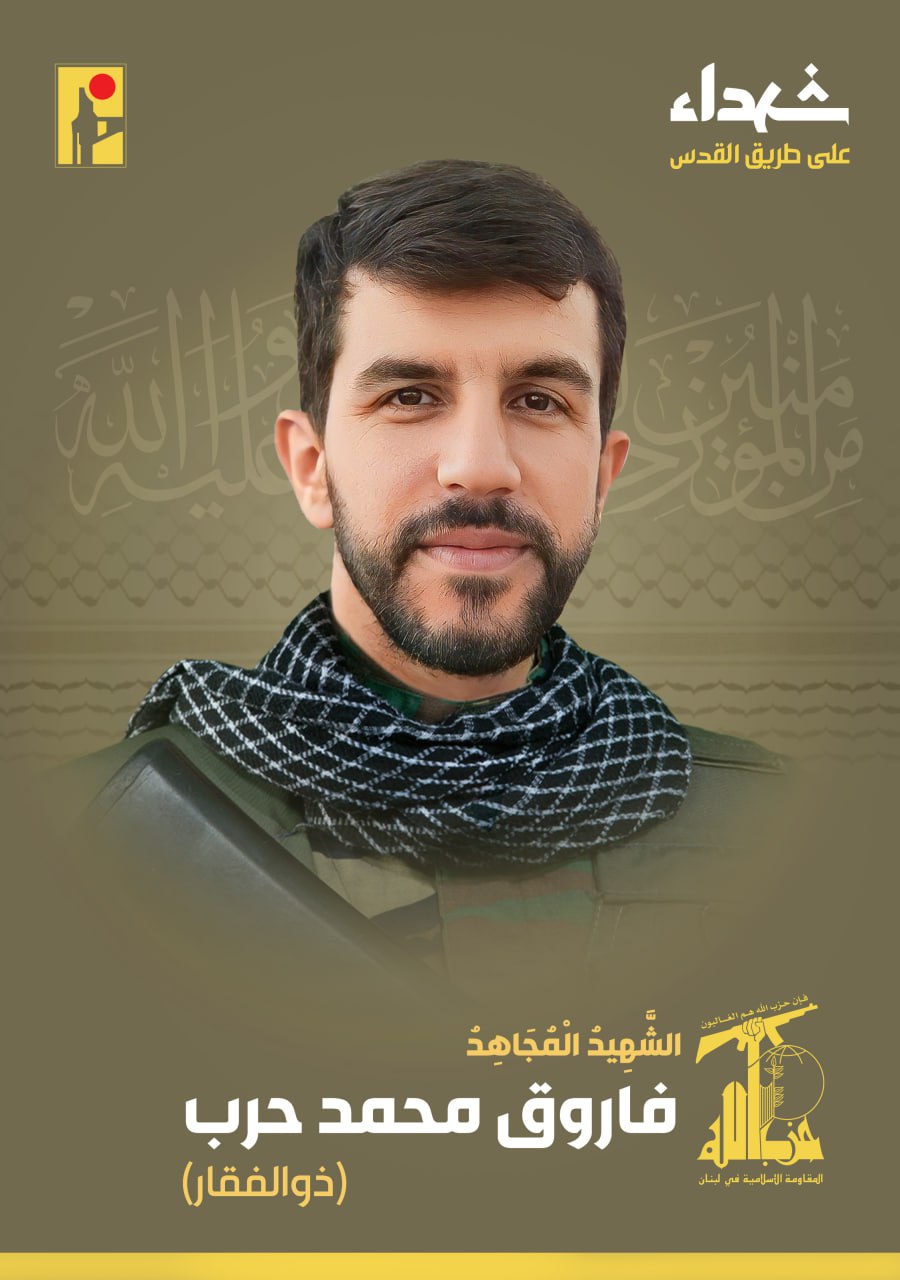 بمزيد من الفخر والإعتزاز، تزف المقاومة الإسلامية الشهيد المجاهد فاروق محمد حرب “ذو الفقار” مواليد عام 1986 من بلدة الحلوسية في جنوب لبنان، والذي ارتقى شهيداً على طريق القدس.
