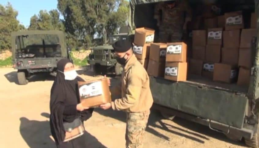 بدأت عناصر الجيش توزيع نحو 2000 حصة غذائية مقدمة كهبة من جمعية “مارتش” بدعم من السفارة البريطانية في لبنان، وذلك في إطار برنامج التعاون العسكري ـ المدني (CIMIC)، وستستمر عملية توزيع الحصص لغاية 24 من الشهر الحالي على ان تشمل مناطق : جبل محسن، باب التبانة، البداوي، المنكوبين، المينا، الزاهرية، القلمون، بحنين في طرابلس والشمال.