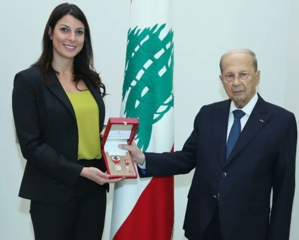 تكريم الرئيس اللبناني السابق عون لراي باسيل