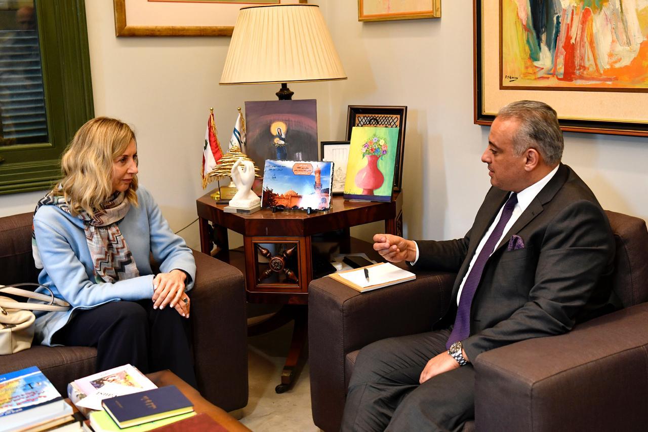 استقبل وزير الثقافة القاضي محمد وسام المرتضى في مكتبه في المكتبة الوطنية- الصنائع السفيرة الايطالية في لبنان نيكوليتا بومباردييني التي زارته مودعة لمناسبة انتهاء مهام عملها الدبلوماسي في لبنان
