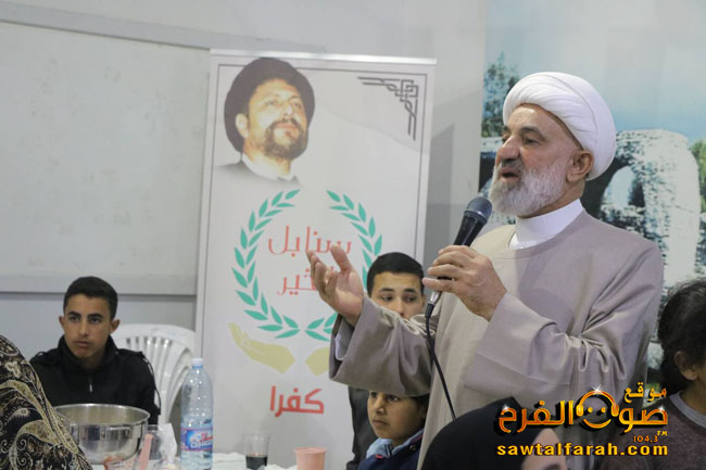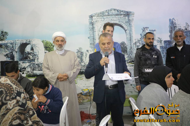 وكانت بالمناسبة كلمة للشيخ حسن عيسى حيا فيها صمود الأهالي في ظل الأوضاع الراهنة، آملاً أن تنتهي الأحداث قريباً ويعودوا آمنين سالمين الى قراهم وبلداتهم.